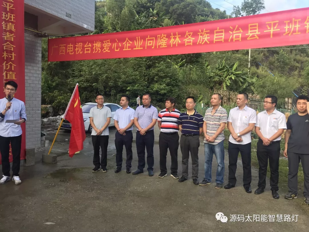 8月31日下午,隆林平班鎮者合村路燈捐贈儀式如期舉行,儀式現場,源碼太陽能路燈劉總及源碼廣西區域經銷商蔡總向者合村無償捐贈太陽能路燈。