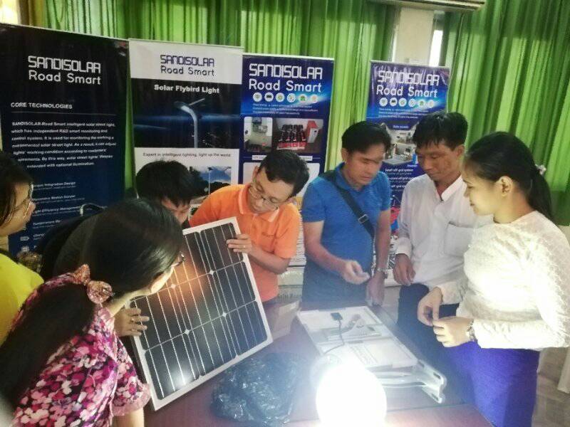 近期,在云南省人民政府和云南省商務(wù)廳支持下,由云南省綠色能源行業(yè)協(xié)會(huì)和緬甸教育研發(fā)創(chuàng)新司舉辦的光伏應(yīng)用技術(shù)培訓(xùn)會(huì)在仰光順利召開,此次會(huì)議旨在加強(qiáng)中緬兩國(guó)的光伏應(yīng)用技術(shù)交流,展示先進(jìn)的光伏應(yīng)用產(chǎn)品,為兩國(guó)的光伏技術(shù)提升營(yíng)造一個(gè)良好的契機(jī)。其中源碼太陽(yáng)能智慧路燈代表行業(yè)目前最先進(jìn)的光伏應(yīng)用技術(shù)與產(chǎn)品,被作為培訓(xùn)嘉賓邀請(qǐng)到此次會(huì)議,為緬甸仰光科技創(chuàng)新司、農(nóng)村發(fā)展部、農(nóng)業(yè)大學(xué)、曼德勒科技大學(xué)、緬甸電力部、緬甸能源部、緬甸農(nóng)村灌溉部等人員進(jìn)行相關(guān)技術(shù)的講解與交流。